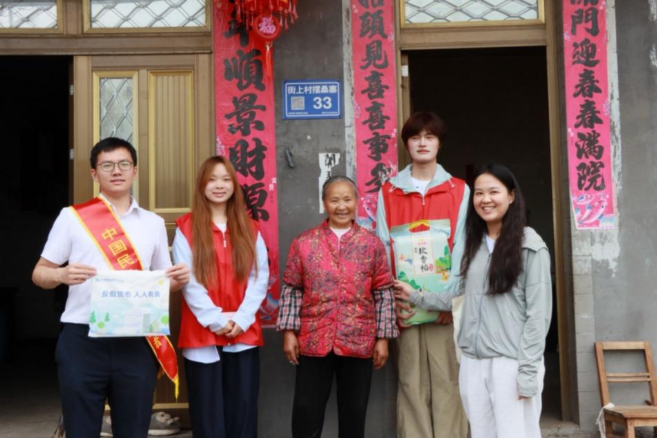 活动伊始,民生银行贵阳分行与贵州经贸职业技术学院的师生志愿者们一同来到街上村困难群众家中,送上米、油等生活必需品,详细了解他们的生活状况与实际困难,传递社会关怀与温暖。在走访过程中,工作人员还通过发放宣传折页、面对面讲解等方式,向村民普及人民币防伪知识,传授假币识别技巧及处置方法,并结合真实案例,揭示常见的假币诈骗手段,提醒村民在日常交易中提高警惕,增强防范意识,切实守护好自己的财产安全。